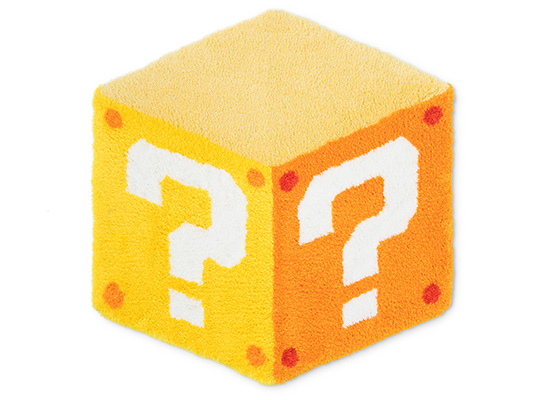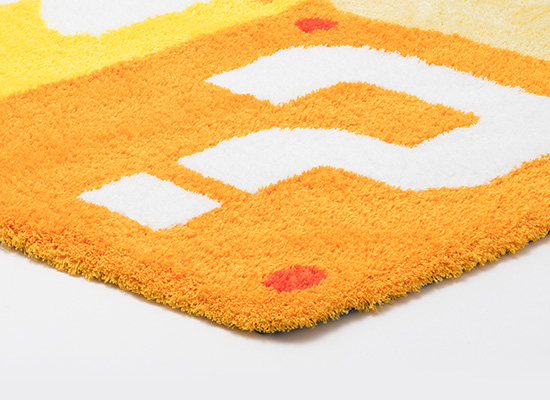 「ハテナブロック」の立体アートをデザインしたミニサイズのラグです。 毛足は長めでふわふわした手触り。 1枚でも複数枚でもリビングや寝室のアクセントとして。