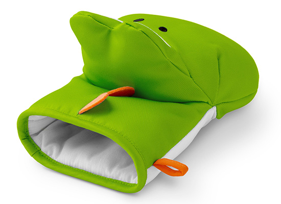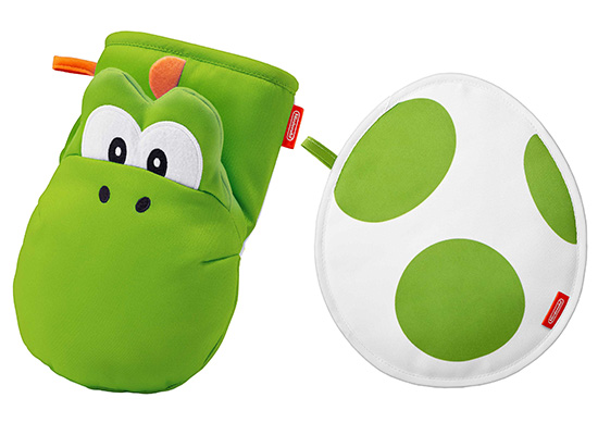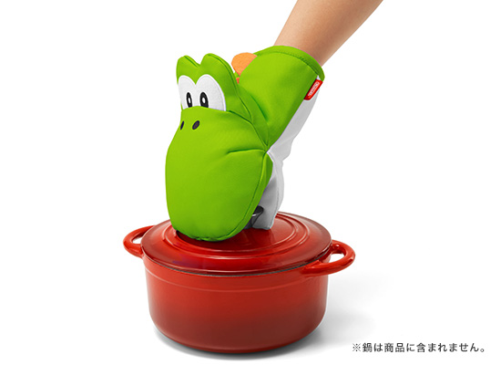 ヨッシーの鍋つかみとたまごの鍋敷きのセットです。お料理シーンを楽しく彩ります。
