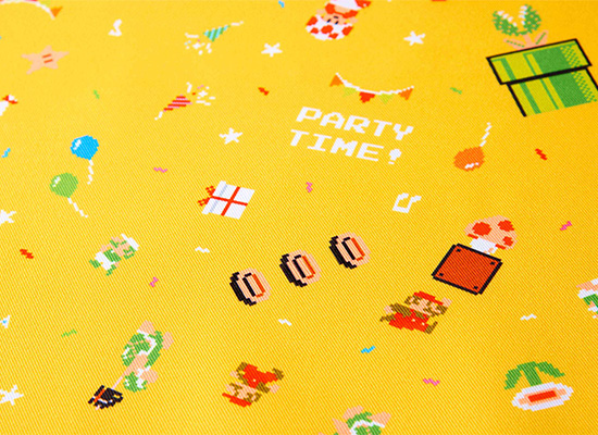 オリジナルの8-bitパーティ柄をプリントしたテーブルクロスです。テーブルを手軽に模様替えできます。