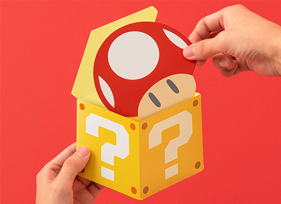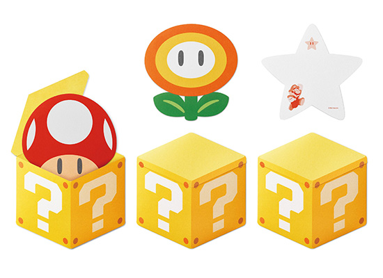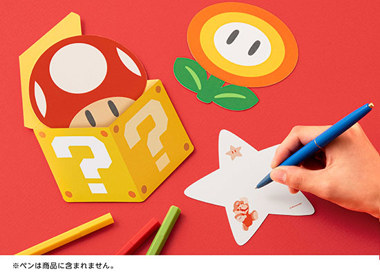アイテム型のメッセージカード各1枚(3種類)とハテナブロック型の封筒3枚のセットです。