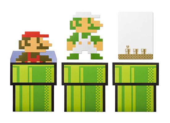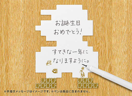 キャラクター型のメッセージカード各1枚(3種類)と土管型の封筒3枚のセットです。