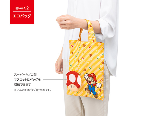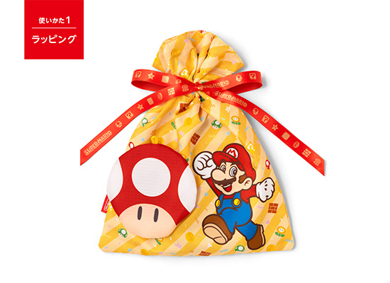 ラッピングやエコバッグとして使えるスーパーマリオのバッグです。 Nintendo Switch ソフトのラッピングにもぴったりです。 エコバッグとして使用する際は、スーパーキノコ型マスコットに収納してコンパクトに持ち運べます。