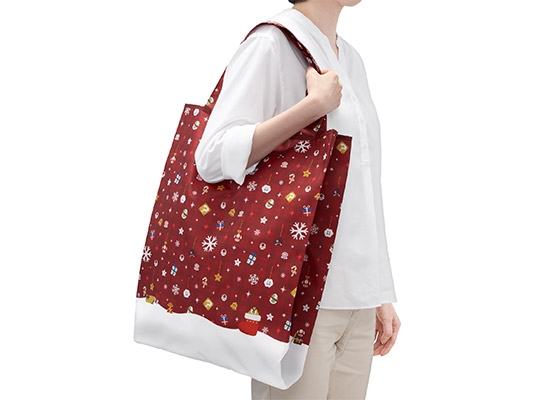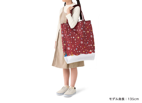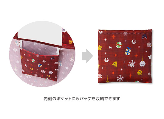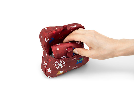 リボンを結ぶとラッピングに、エコバッグとして使用する際は付属のポーチやバッグ内側のポケットに収納してコンパクトに持ち運べます。お買い物や旅行先で増えた荷物を入れるのにぴったりです。