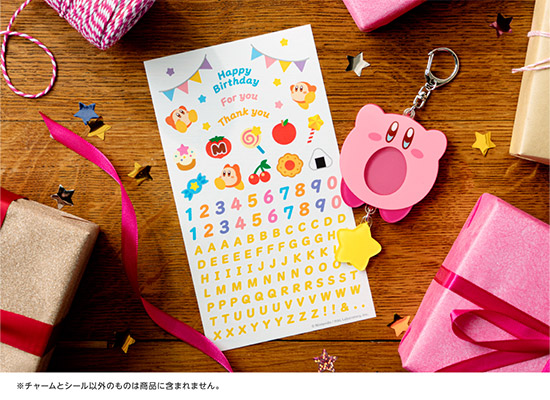 アクリル製のチャームとシールのセットです。数字やアルファベットのシールを組み合わせてチャームに貼ることで、お誕生日のお祝いメッセージやネームプレートを作ることができます。