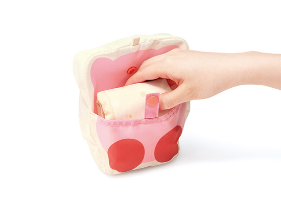 リボンを結ぶとラッピングに、エコバッグとして使用する際は付属のポーチやバッグ内側のポケットに収納してコンパクトに持ち運べます。お買い物や旅行先で増えた荷物を入れるのにぴったりです。