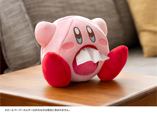 ロールペーパーを手軽に使いやすく収納できるぬいぐるみ風のホルダーです。「カービィ」の口からペーパーを引き出して使えます。