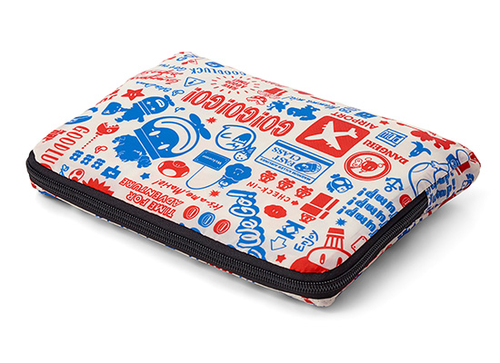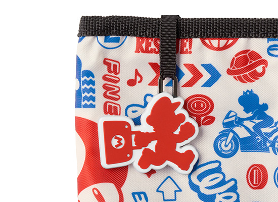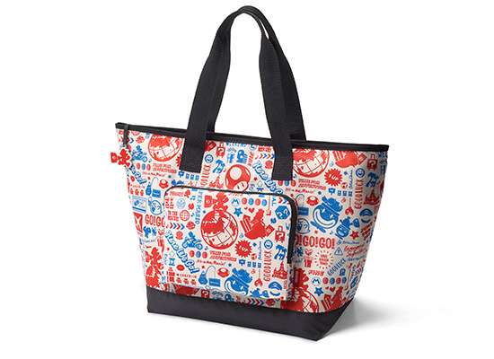 コンパクトに折りたたんで携帯できるトートバッグです。旅先でお土産など荷物が急に増えても安心です。 このシリーズオリジナルのトラベル柄をデザインに使用しており、ファスナーにはマリオのチャームも付いています。