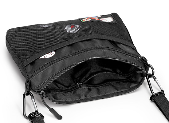 ファスナーの引手やメッシュポケットの内側にテレサが潜んでいます。