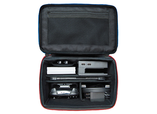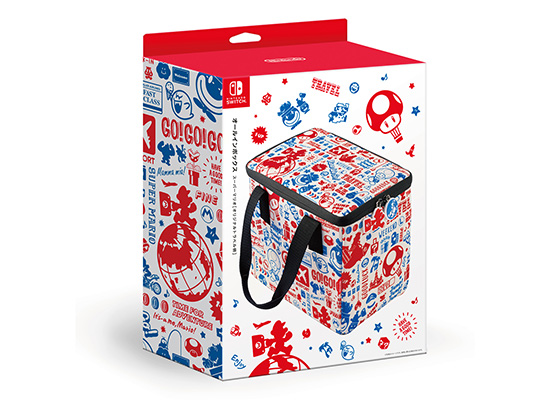 Nintendo Switch本体、周辺機器などの収納や持ち運びに便利な、「スーパーマリオ オリジナルトラベル柄」のボックス。 「旅」をイメージしたオリジナルデザイン。 ファスナーにはボストンバッグを持ったマリオと地球のチャームが付いています。