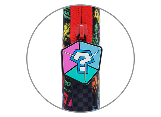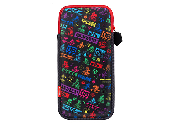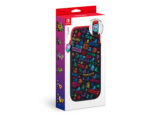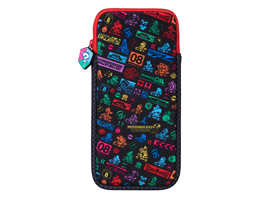 Nintendo Switch本体にJoy-Conを取り付けたまま収納できるシンプルなポーチ。 ファスナーにはアイテムボックスのチャームが付いています。